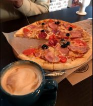 Смачна піца, готують 15 хвилин, можна замовити заздалегідь. Раджу замовити + порцію сиру (25 грн.) не пошкодуєте. Оновил...