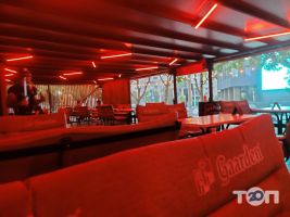 Бар Orange Bar пропонує веселий відпочинок з екстремальними коктейлями, димними кальянами, смачними стравами та унікальною шоу-програмою. Сучасний інтер'єр наповнений яскравими кольорами: помаранчевим, червоним і зеленим. Цікаві елементи декору, такі як відра та бочки, гармонійно доповнюють панорамні вікна та зелені насадження. Основна увага в кухні приділяється тонкій італійській піці з різномані ... Читати далі
