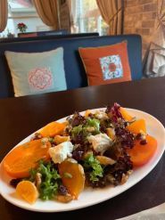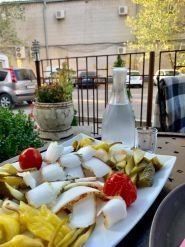 Широкий асортимент салатів, м'ясних страв грузинської кухні, десерти.