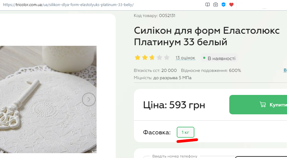 После "сотрудничества" с этой компанией решил оставить отзыв. Первое- в самом магазине это сделать невозможно, т.к. вылезают ошибки сайта из этого прихожу к выводу, что отзывы на сайте липовые! Ну, не в этом суть))) Дело в том что мне СРОЧНО понадобилось сделать формы из силикона на заказ и среди множества сайтов выбрал Триколор... после заказа перезвонили быстро и менеджер назвала сумму которой нет на сайте- больше 800 грн! я указал что на сайте сумма на 300грн меньше- это за 0.5кг, был ответ. Ладно, время поджимает и нужен именно такой силикон, который есть на сайте. Заказал и произвел предоплату. об отправке конечно же не сообщили... утром на следующий день уточнил об отправке- вчера отправили был ответ. Ок. пришла посылка))) фактический вес 1кг, указан вес в накладной 2 кг)) И прикол в том что фирма не та, которую заказывал. Да еще и прозрачный и не пищевой... Такие дела. Да, посылку принял, предоплату сделал ж)) Конечно больше в этот магазин ни ногой! Подвели "от души". Не рекомендую связываться с такими продавцами. Кстати программисту двойка за ошибки на сайте.