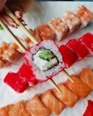 Гарячі роли, азіатські салати, рис з овочами, вино, порції суші, сашимі, комплексні обіди.