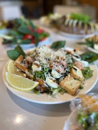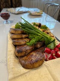 Є власна випічка та різні вироби з м'яса та риби.