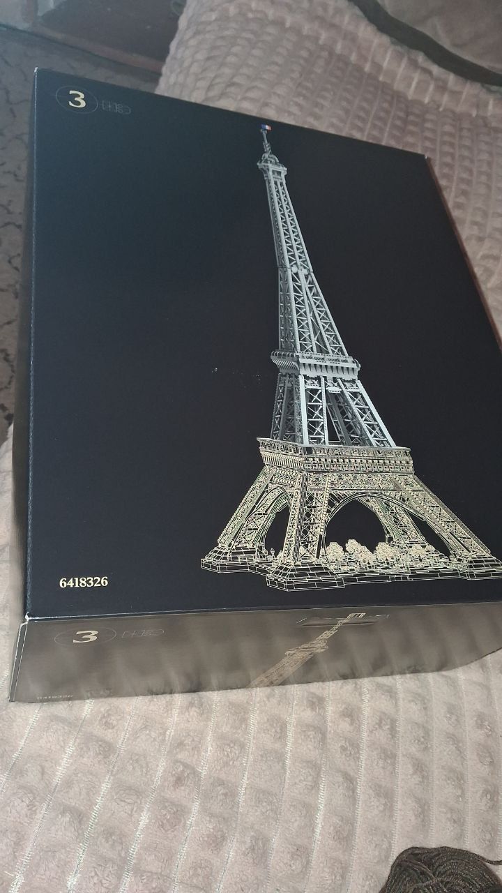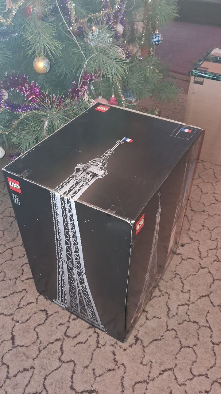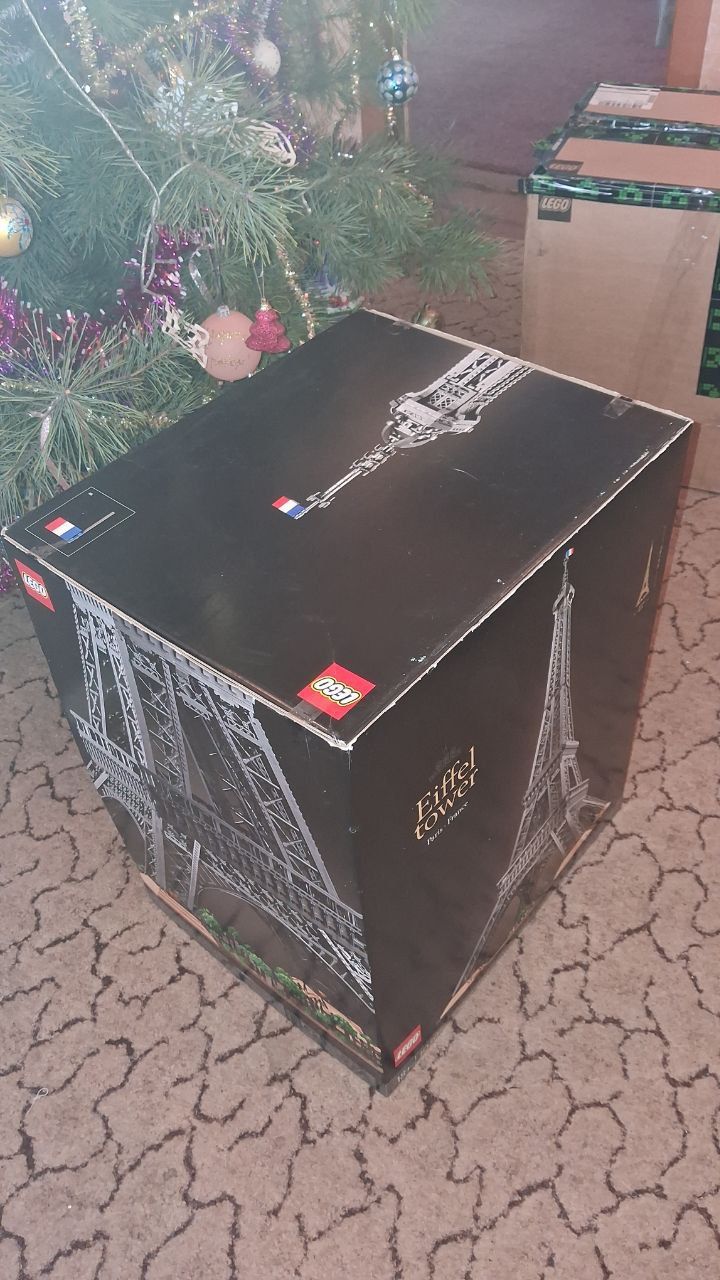 Lego Эйфелева Башня Icons 10307. Топ2 набір за кількістю деталей. Красивий, орігінальний. Другу не дозволили відкрити коробку лего (не транспортувальну, саме чорну) і не дивно, бо вона має орігінальні наліпки, що свідчить про те, що коробку не відкривали з самого магазину ЛЕГО. У великий коробці три коробки поменше, теж з орігінальними наліпками-пломбами (з чорною рискою та кодом). Пломби на зовнішній коробці трохи в пилу, бо, мабуть, на цій коробці стояв інший набір. Пломби на внутрішніх коробках в ідельному стані. Сам набір прийшов в оригінальній коробці ЛЕГО, але, судячи з наліпок на коробці (не додаю фото бо не знаю, чи є там чутлива для замовника інформація) вона використовувалась для транспортування набора ЛЕГО Титанік. Також транспортувальна коробка була додатково заклеєна брендовим скотчем ретромагаза.
