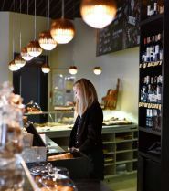 Макаруни, торти та інші десерти в атмосферному кафе-кондитерській.