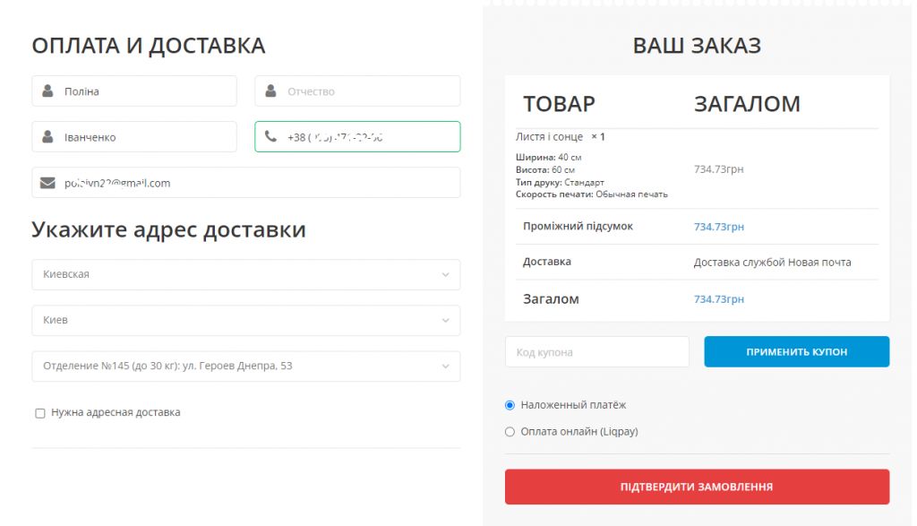 - Зручне оформлення замовлення без додаткової реєстрації.