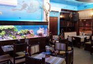 Затишна зала з великим акваріумом, різноманітність напоїв, європейська кухня.