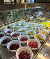 Пропонуються страви української кухні, включаючи комплексні обіди та можливість замовлення їжі з собою. Наявна літня тераса для споживання їжі на свіжому повітрі. Забезпечено формат самообслуговування для швидкого та зручного перекусу. Гарантується висока якість обслуговування та продукції.
