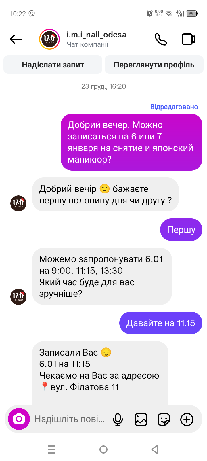 Записалась на манікюр 23 грудня на 6 січня. Попередила, що зі зняттям.
