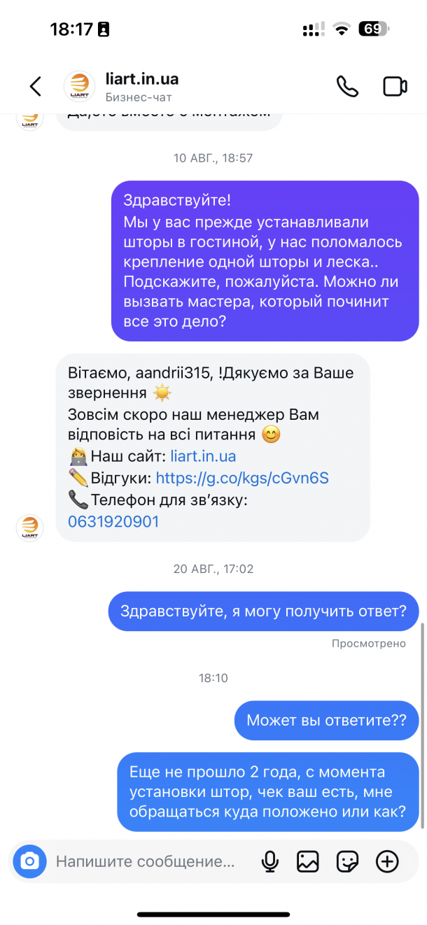 Відгуки про Liart-Service. Жалюзі, ролети, рулоні штори (169)