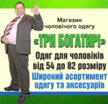 Три богатирі,магазин чоловічого одягу великих розмірів