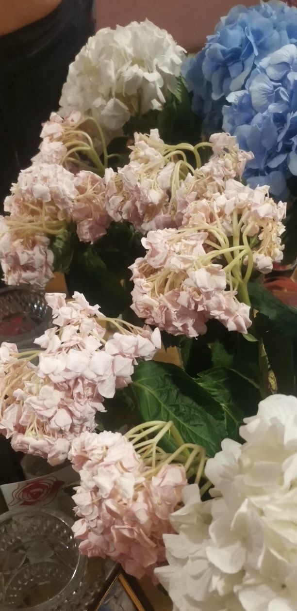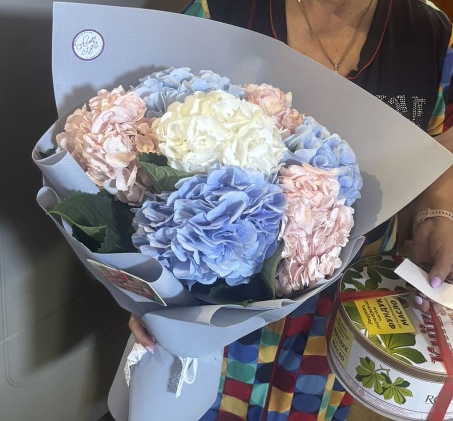 И после перезванивает мне и рассказывает,что мы видимо не правильно их поставили в вазу и обрезали , мол хозяйка сама доставила моей маме и они были в отличном состоянии.. что случилось за три часа с цветами их не волнует !! О вопросе замены цветов речь вообще не шла . А потом вообще на связь не выходили, телефон молчал. Ребята, я безумный любитель гортензий,это цветы долгожители которые стоят 10-14 дней вообще без проблем . У меня всегда в доме эти цветы .Знаю прекрасно ,что с ними если свежие то ничего бы не произошло ,стояли бы и радовали всех долго . По итогу , окончательно расстроенная мама , завывший полностью букет к вечеру и никакой обратной связи !!! Фото супер букета до и после прилагаю, чтоб никто не попался как и мы, и не портил никому из близких настроение !!!