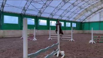 Для тренировок используются крытый манеж 23×68 м, препятствия для конкура с безопасными «калабашками» и бочка.