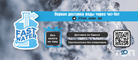 Быстрая доставка питьевой воды Fast Water (Фаст Ватер) - это качественный сервис с возможностью заказа бутылей через чат-бот. Принимаем заказы круглосуточно, доставляем с 9:00 до 20:00 по Одессе. Вкусная вода со сбалансированным составом для питья и приготовления пищи.