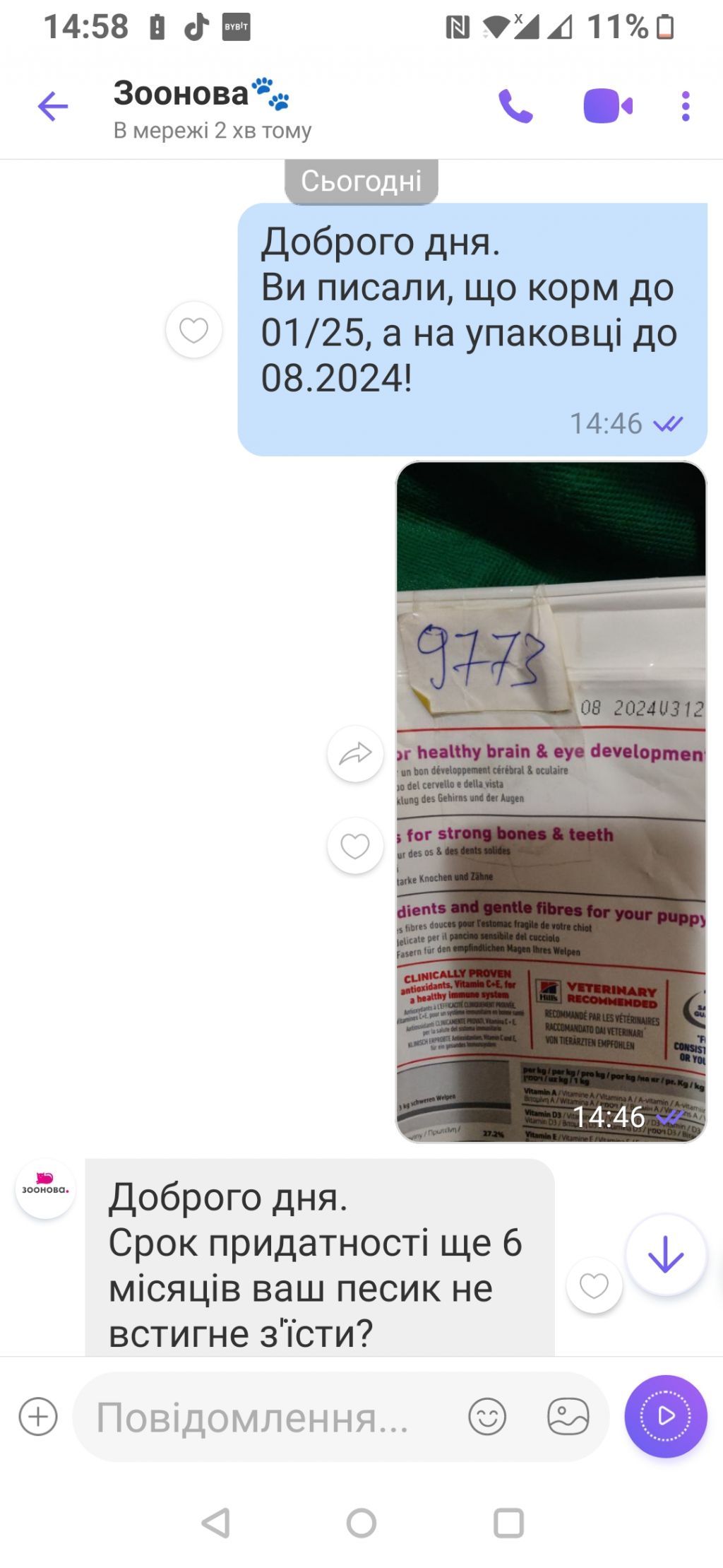 Попросив зробити обмін, на що менеджер відповіла, що термін ще 6міс, і... Показать полностью Замовив корм для цуценяти.