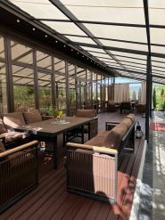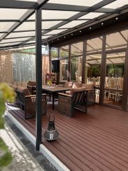 Блюда с мангала, летняя терраса, аренда лежаков, кальян и приветливый персонал.
