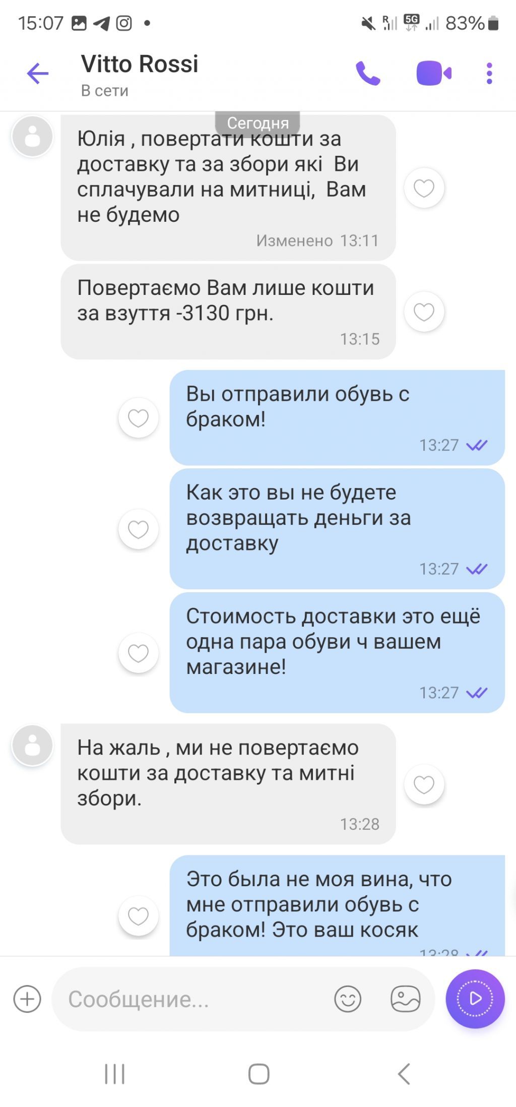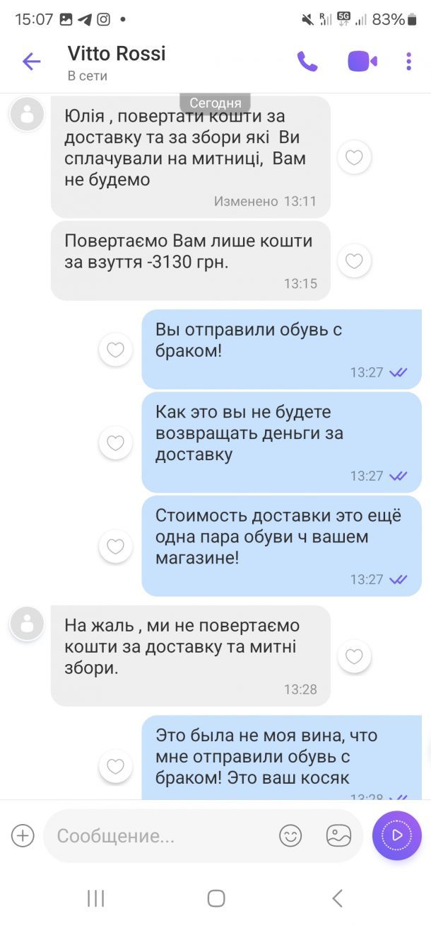 Вдома уважніше оглянувши взуття,виявилось,що це не єдиний недолік!!!Шкіра біля підошви попідсікалась,підошва почала розтріскуватись і відклеюватись!Звернулись з вимогою повернути кошти!Знову буде проведена "експертиза".