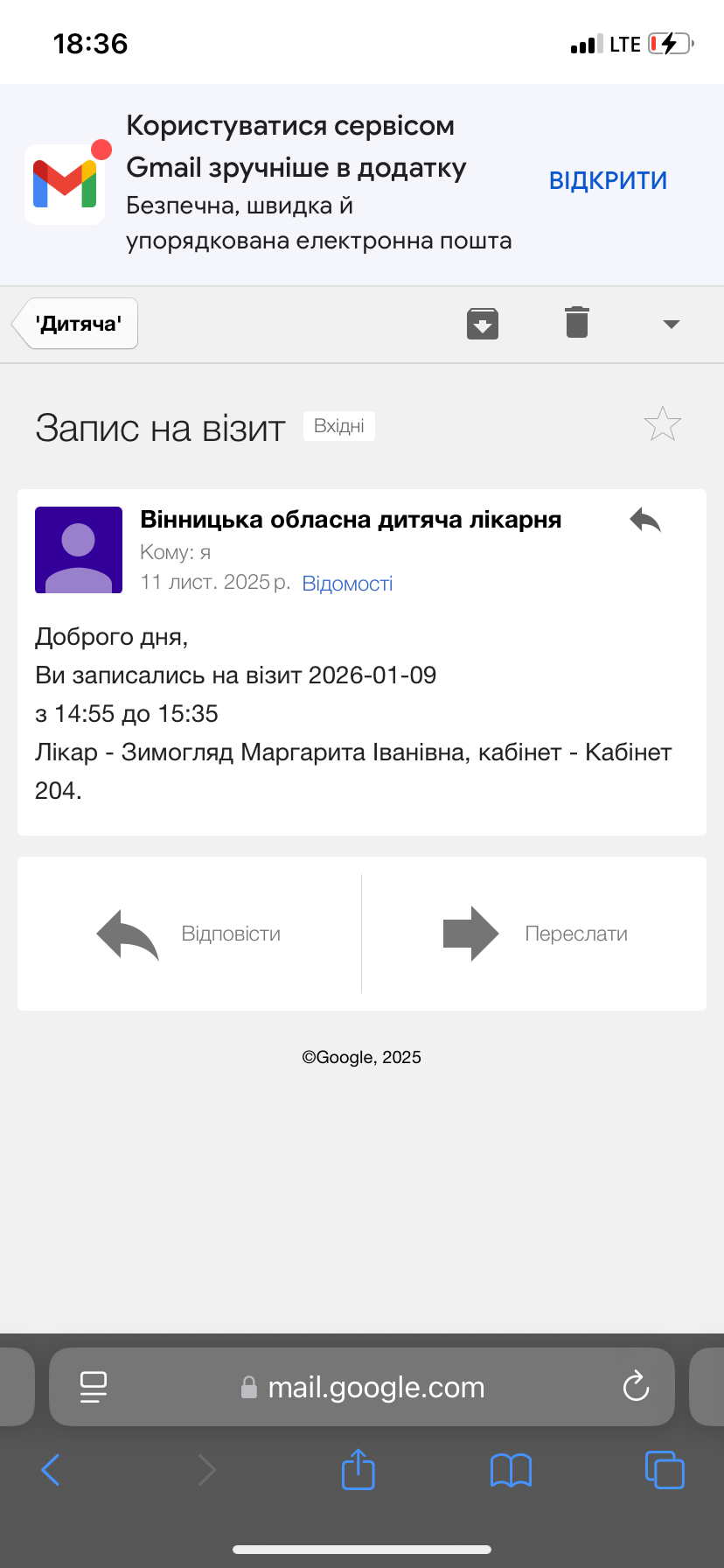 Записались до Психіатра Зимогляд Маргарити 9.01.26 року на 14:55, ось настав час нашого прийому, стукаю у двері ніхто не відповідає, по відкриваю, говорю доброго дня, і тут з під компʼютера говорячи по телефону виглядає «лікар» цмакаючи і закочуючи очі подивилась як-то ми до неї додому прийшли і далі почала говорити. Думаємо добре лікар порозмовляє по телефону, тоді вийде запросить! Вже 15:00 лікар чула що ми ще є, не вийшла, нічого! Я не хотіла при дитині робити скандал,тому розвернулась і з дитиною просто пішла! Як може керуюча лікарка (ментального здоровʼя) навіть елементарно нормально відноситись до пацієнтів? Добре що ми з Вінниці!