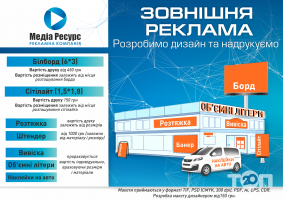 Компания «Медиа Ресурс» - это рекламно-производственная компания в городе Житомир. Мы существуем с 2012 года и гарантируем качество своей работы.