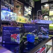 Попугаи и рыбки, различные корма и товары по уходу за домашними любимцами.