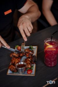 - Численні страви з гриль-меню (шашлики, медальйони, стейки, люля-кебаб, ребра BBQ, овочі гриль) і сети для великих компаній.