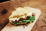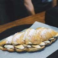 Круасани з різними видами начинки, кавові напої, десерти.