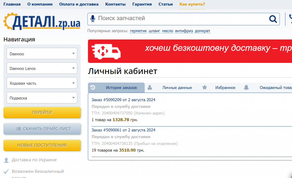 Сделал один заказ на форму бесплатной доставки, и после сделал второй габаритный. На следующий день отправили все одной посылкой с общей стоимостью. В деталях акции не указано что нужно предупреждать о том, что заказ будет на бесплатной доставке. А менеджер сказал что нужно. Вообщем бесплатная доставка не сработала, ситуацию не решили. Оплачу всю доставку двух заказов