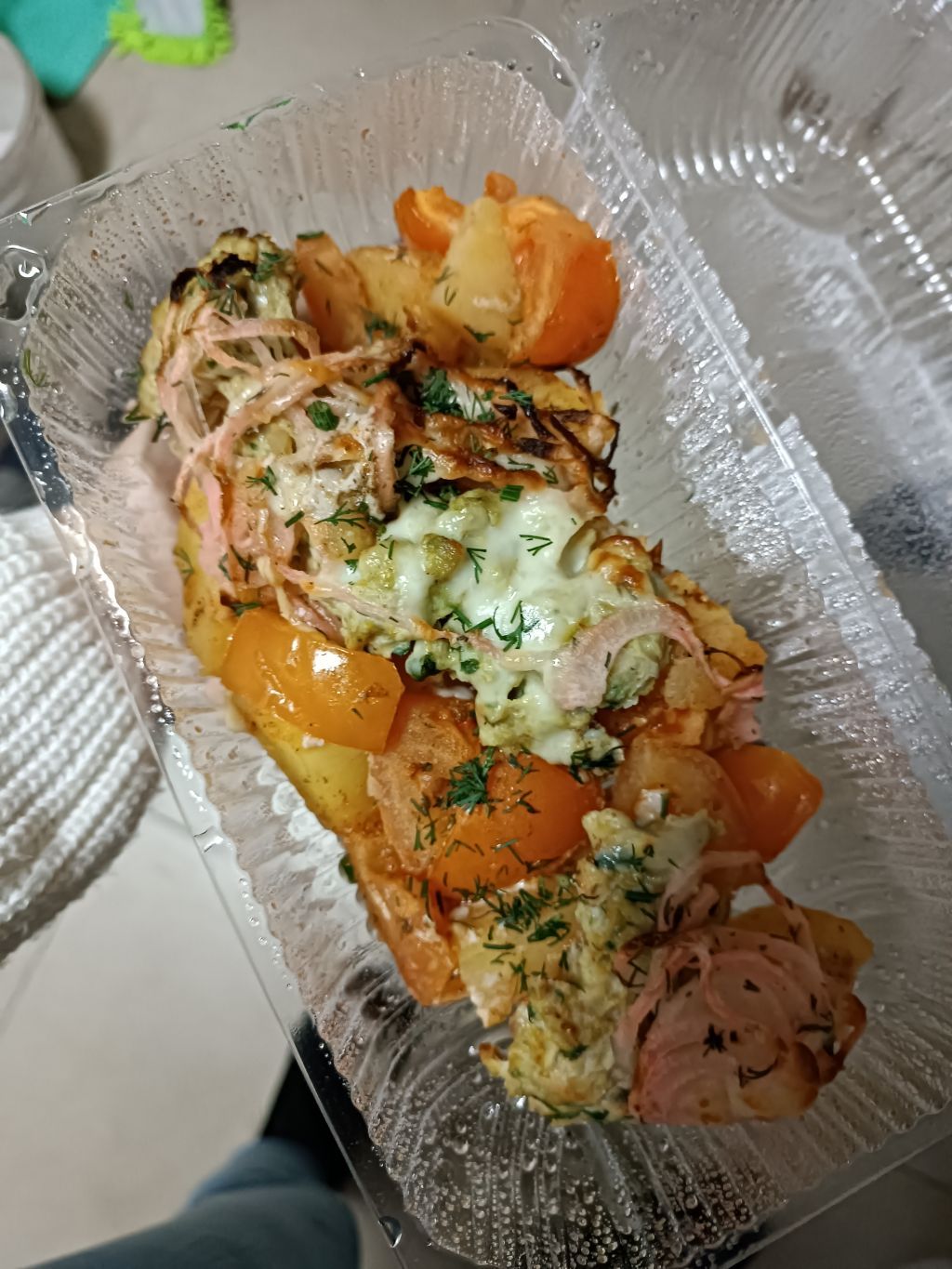 Люля с картошкой и помидорами на сковородке, так же разочаровал, люля на вид было похоже что до нас её... Показати повністю Заказали покушать на вынос, была полностью разочарована. Был в заказе Цезарь, который визуально вообще не похож, по вкусу чувство как будто скис.